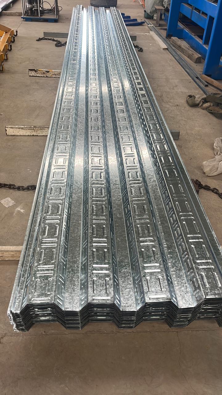 Se emplea lámina galvanizada con forma corrugada o trapezoidal para asegurar la colaboración con el concreto.