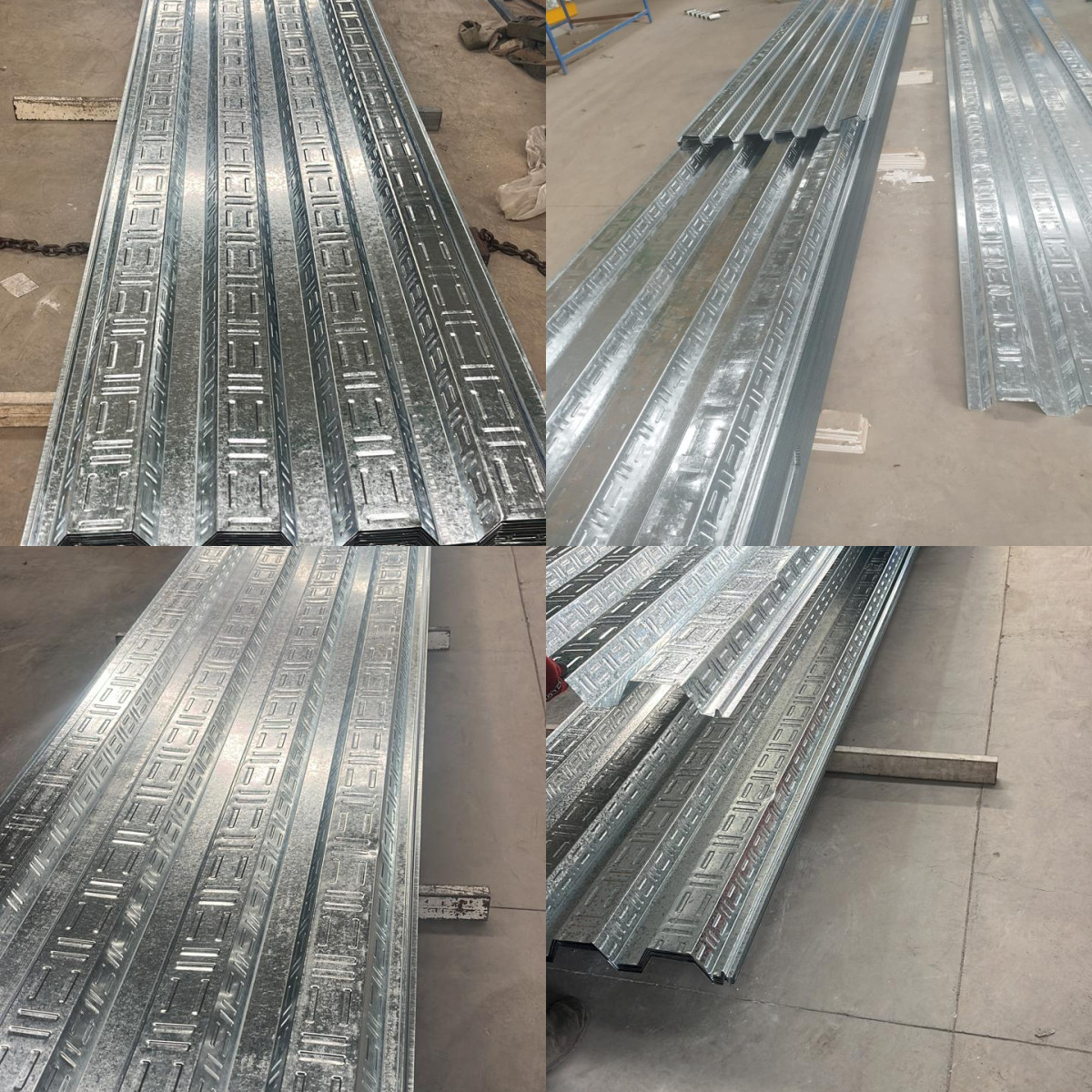 Se emplea lámina galvanizada con forma corrugada o trapezoidal para asegurar la colaboración con el concreto.