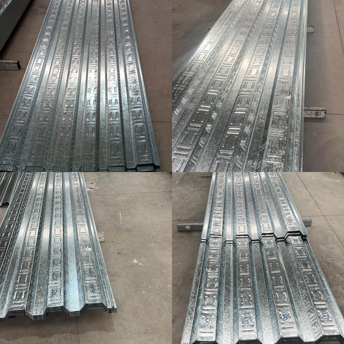 Principalmente chapa metálica nervada de acero galvanizado y concreto armado, junto con refuerzos de acero para garantizar resistencia y durabilidad.
